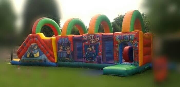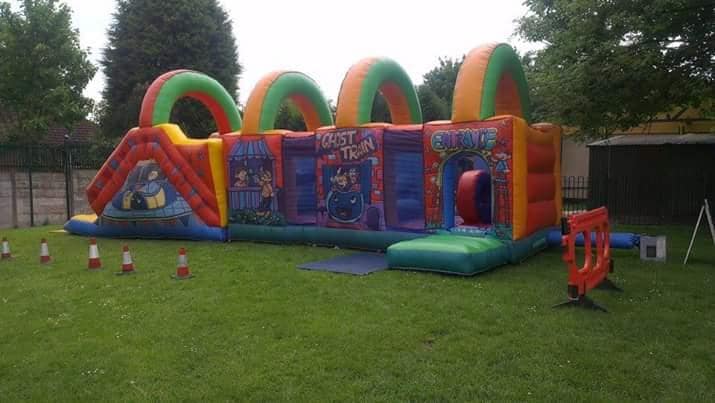 this obstacle course is great fun and entertainment and great value for money, comprising of: bish bash, unders and overs tubes and large slide at the end