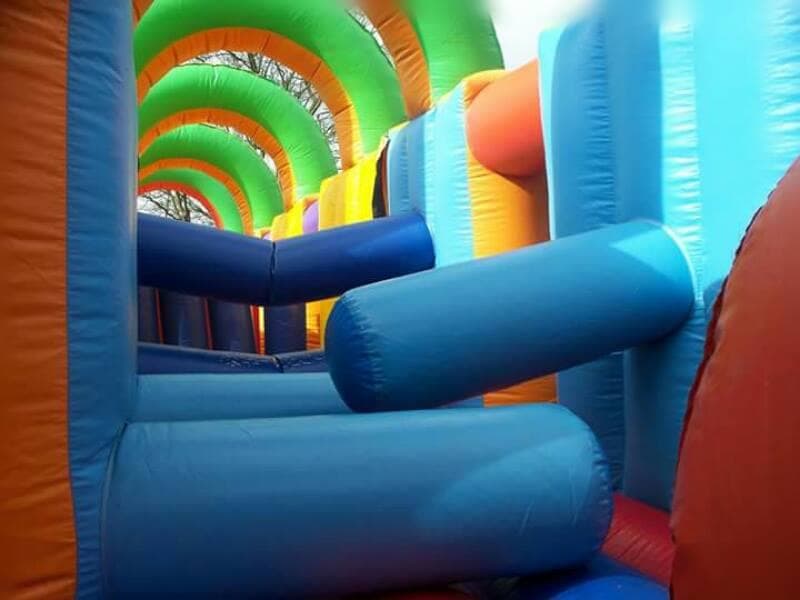 this obstacle course is great fun and entertainment and great value for money, comprising of: bish bash, unders and overs tubes and large slide at the end